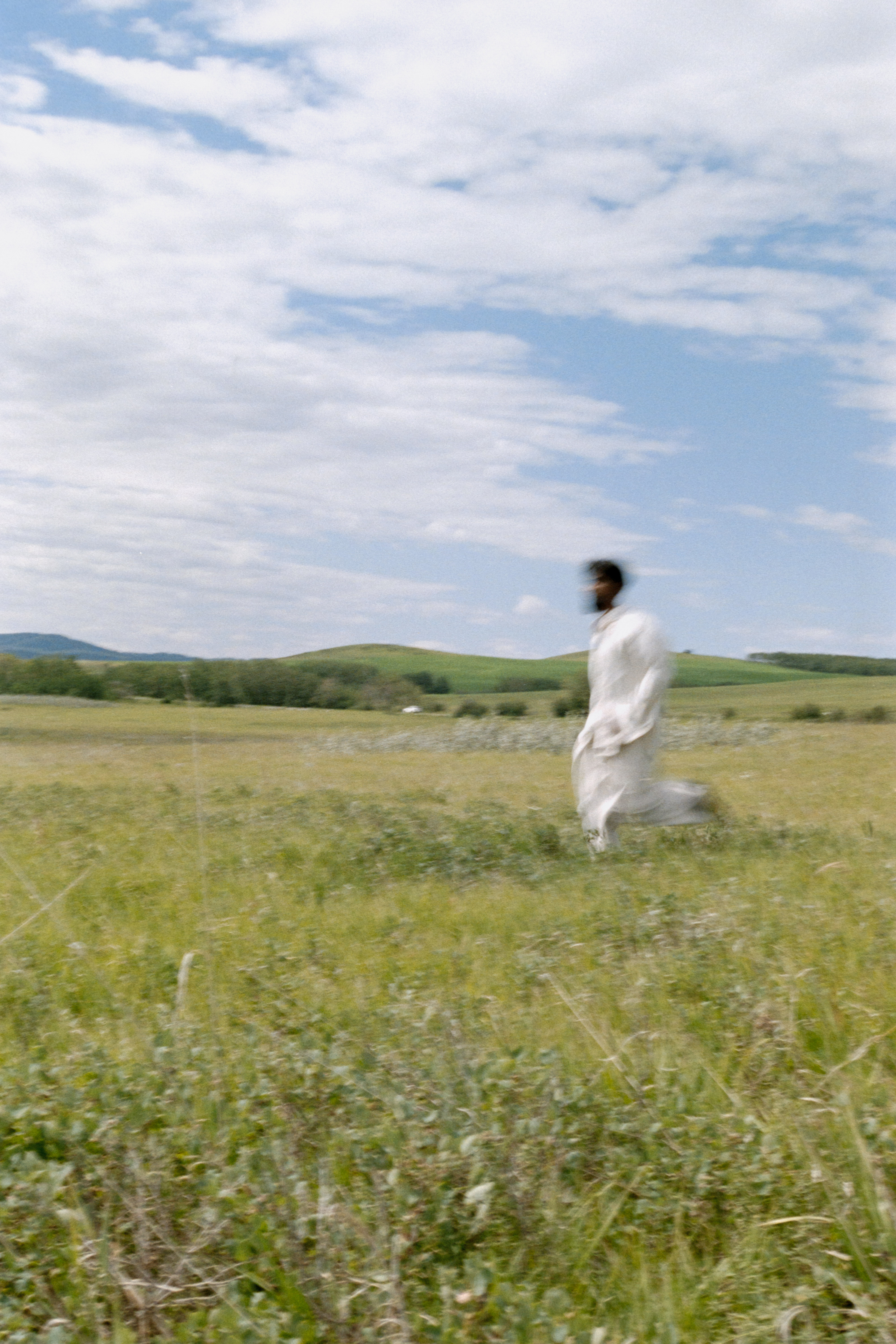 In my final weeks in Alberta, as my visa neared expiry, I photographed Nikhil, who immigrated to Canada as a child and, decades later, still does not hold citizenship. His suspended belonging mirrored my own, and the prairie became our stage of contradictions: vast yet exposing, promising yet precarious. On repeated border trips, I witnessed the quiet performances of worthiness demanded by immigration systems, ironed shirts, rehearsed hope, refusals delivered in waiting rooms. Even in the portraits made in fields, Nikhil’s pressed shirt carried this weight. I raised fabric backdrops as fragile architectures: frames that never sheltered, symbols of temporary belonging. At summer’s end, I sold everything I had built in Canada, including the car that carried us to these fields and to the border. This work asks what it means to seek home in landscapes that may never fully claim us.